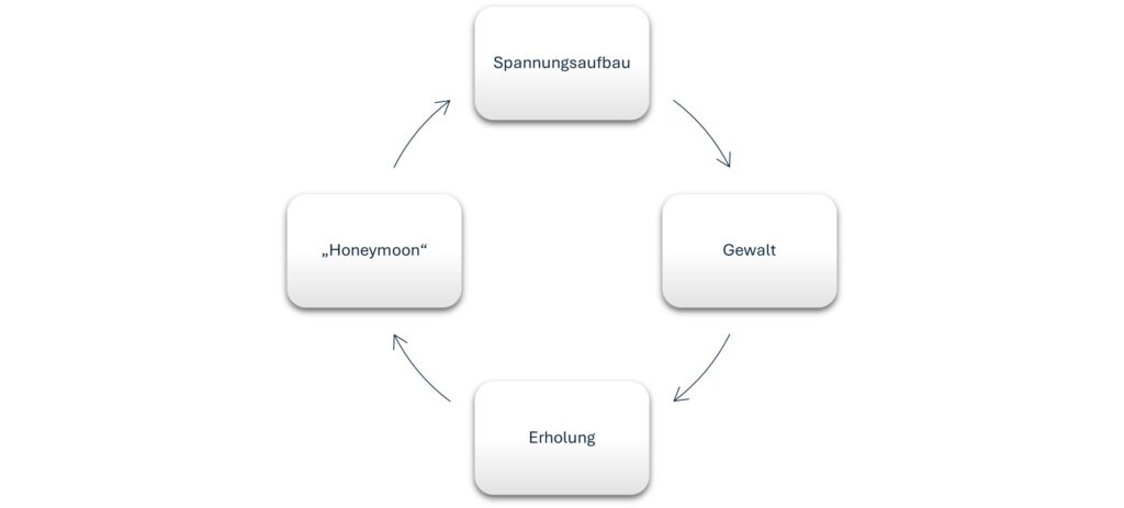 In der häuslichen Gewalt ist das Paar in einem Teufelskreis gefangen. Dieser Zyklus der Gewalt läuft in drei Phasen ab, die sich ständig wiederholen: